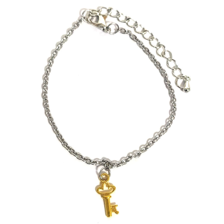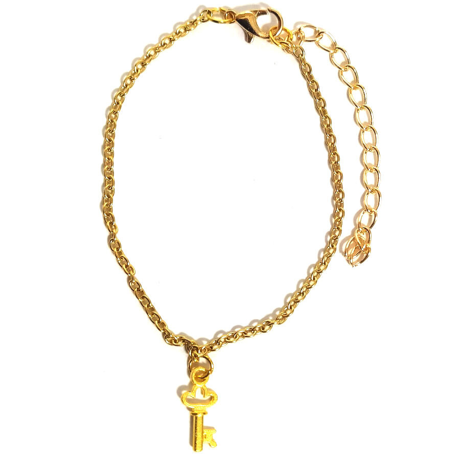 Aranykulcs karkötő és charm, választható arany vagy ezüst színű karláncra vagy pu bőr karkötőre.
