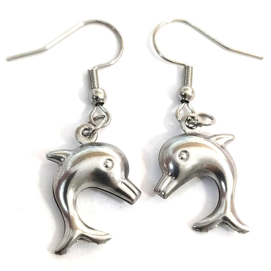 Delfin fülbevaló, választható arany vagy ezüst színű akasztóval.