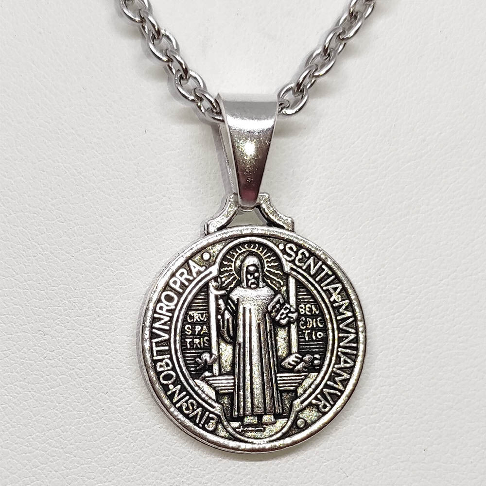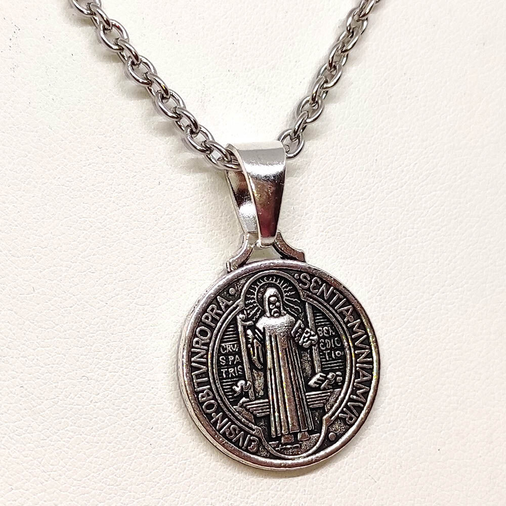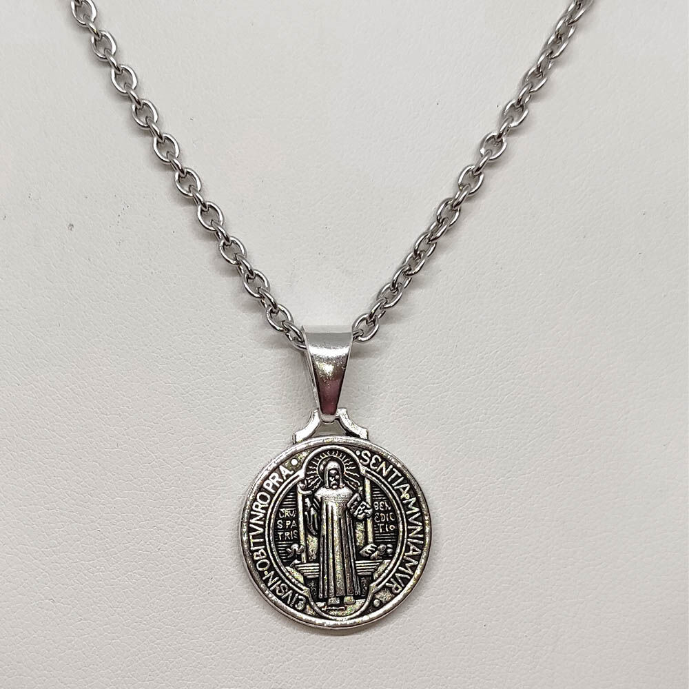 Ezüst színű Jézus és Szentírás medál nyaklánccal.