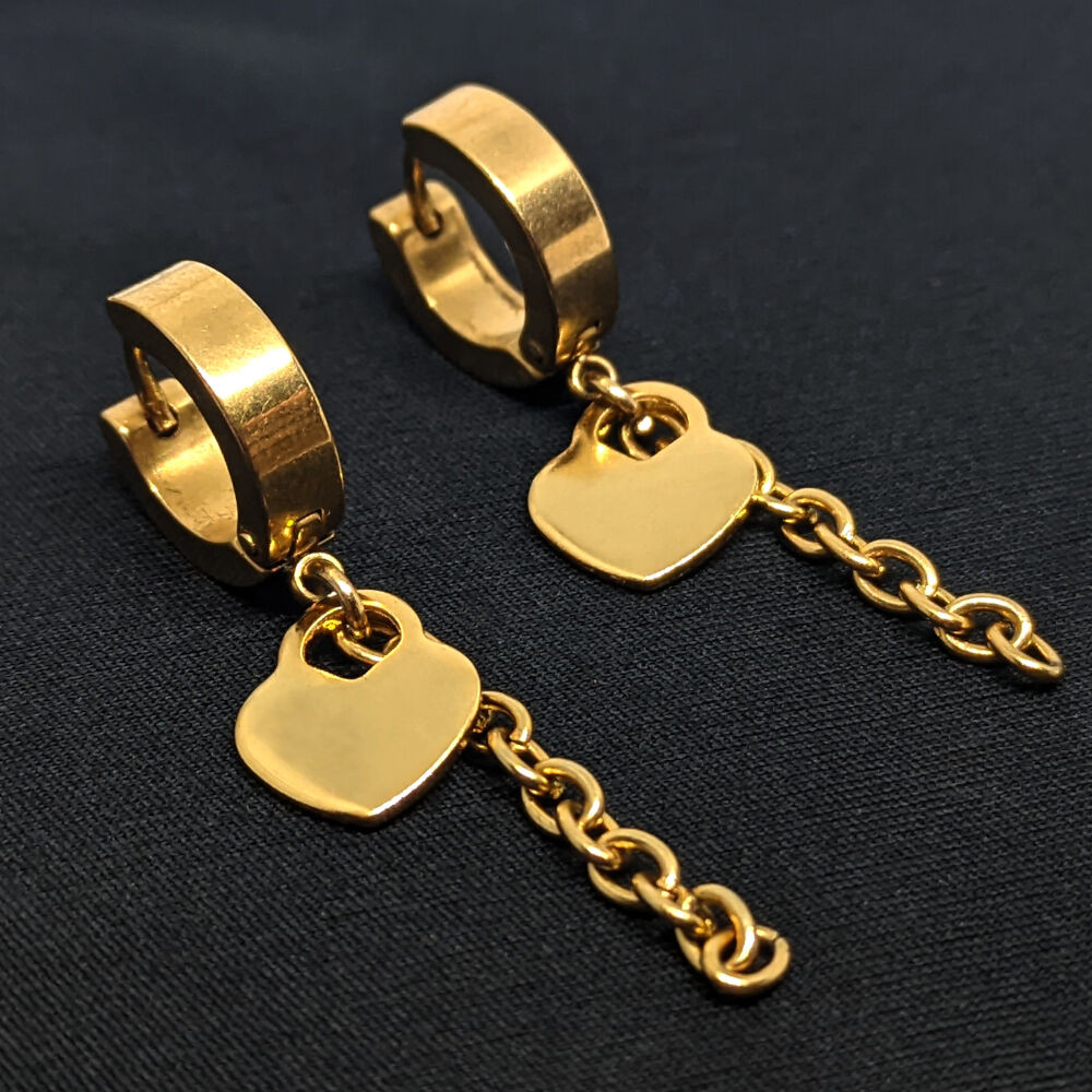 Nemesacél Szív Lakat fülbevaló lánccal, arany színű