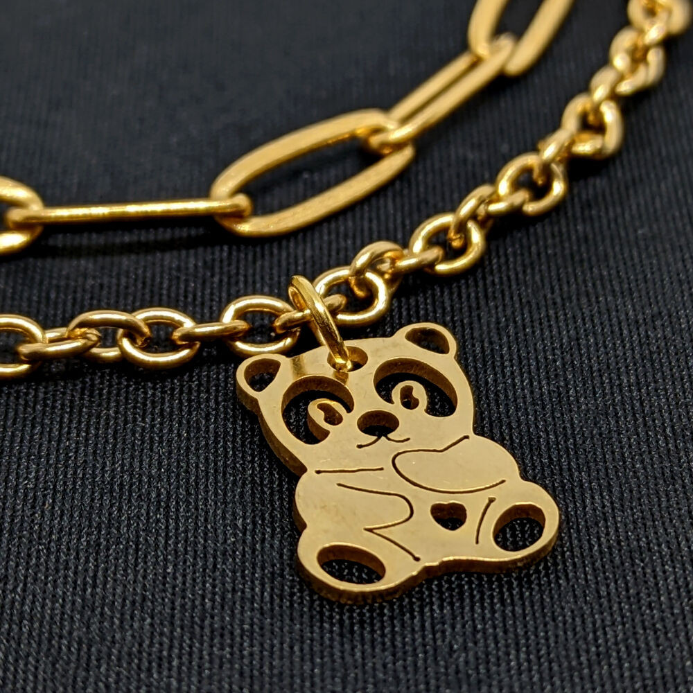 Pandás rozsdamentes acél dupla karkötő, arany színű