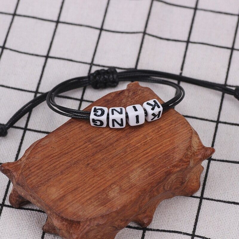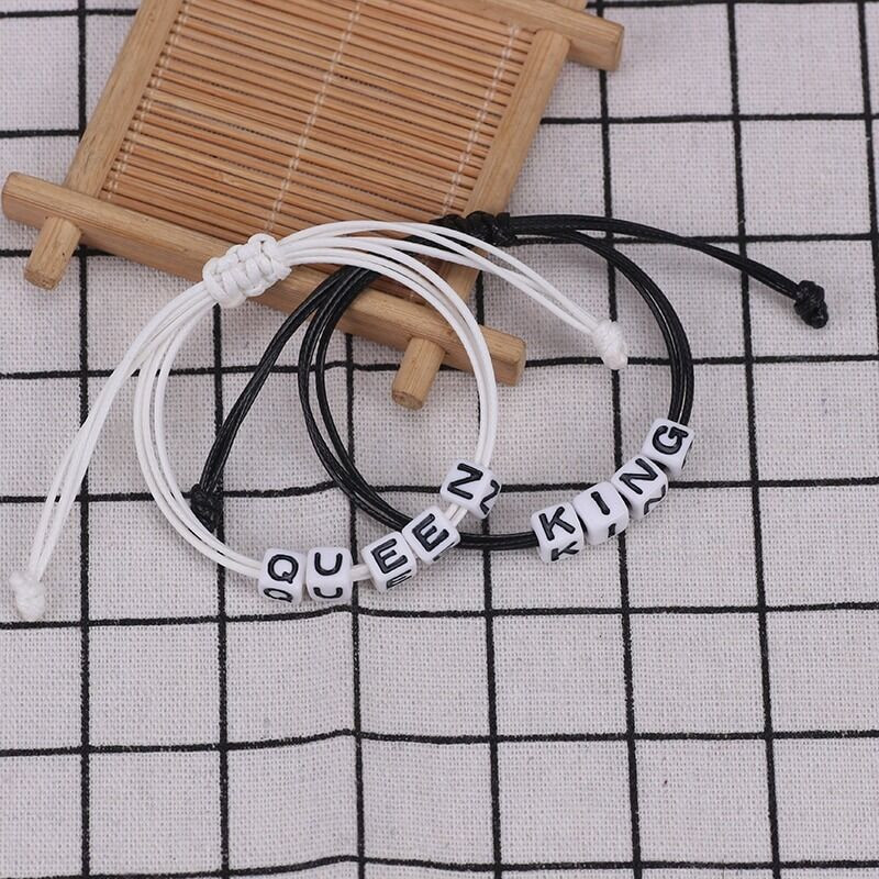 Queen-King feliratos páros karkötő, fekete-fehér. Külön is szép karkötők, de együtt adják az örök üzenetet.