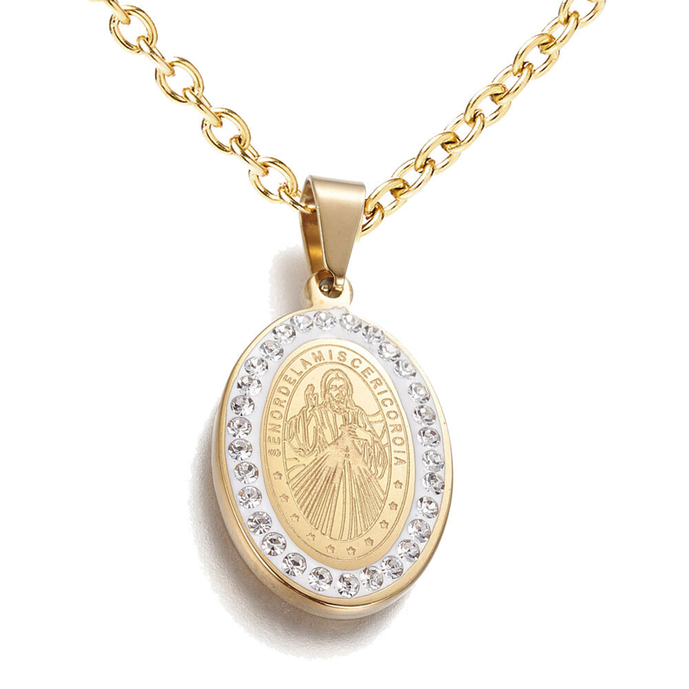 A rozsdamentes acél strasszos Jézus medál a kecsesség és nőiesség szimbóluma, egy gyönyörű arany színű nyaklánc. Ez az ékszer nem csak a divatos, hanem mélyebb jelentéssel is bír..