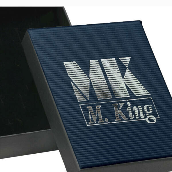 – M.King márkajelzésű nemesacél logóbiléta.