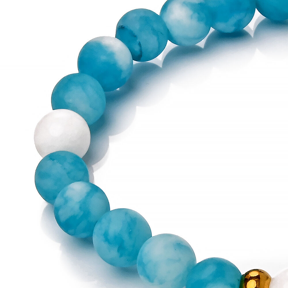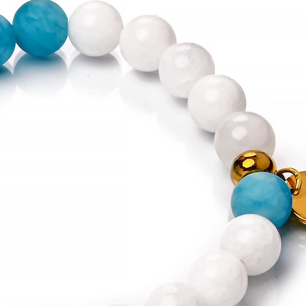 Romantikus, kifinomult, kecses amazonit és jade karkötő, alkalmakra, de akár a hétköznapokon is viselhető. A Maria King kollekció letisztult darabja.