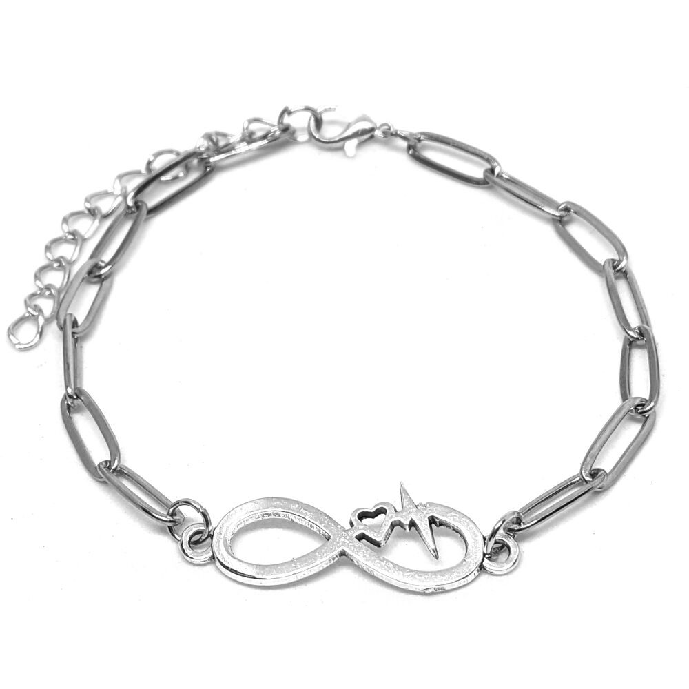 Végtelen-Szív charmos rozsdamentes acél hosszú szemes karkötő, ezüst színű